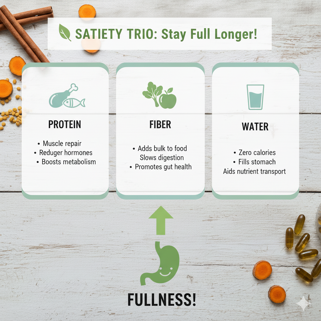 A review on food satiety found that a food’s “filling power” depends not only on its nutrients—like protein, carbs, and healthy fats—but also on how it looks, smells, and feels in your mouth. In other words, even the texture and flavor of your snacks can influence how full you feel after eating. (ScienceDirect)